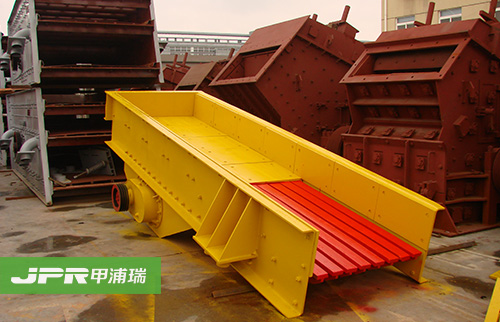 振動(dòng)給料機(jī)在砂石生產(chǎn)線中可為破碎機(jī)連續(xù)均勻地喂料避免破碎機(jī)受料口的堵塞。振動(dòng)給料機(jī)機(jī)是利用振動(dòng)器中的偏心塊旋轉(zhuǎn)產(chǎn)生離心力,使篩廂、振動(dòng)器等可動(dòng)部分作強(qiáng)制的連續(xù)的圓或近似圓的運(yùn)動(dòng)。物料則隨篩廂在傾斜的篩面上作連續(xù)的拋擲運(yùn)動(dòng),并連續(xù)均勻地將物料送至受料口內(nèi)。